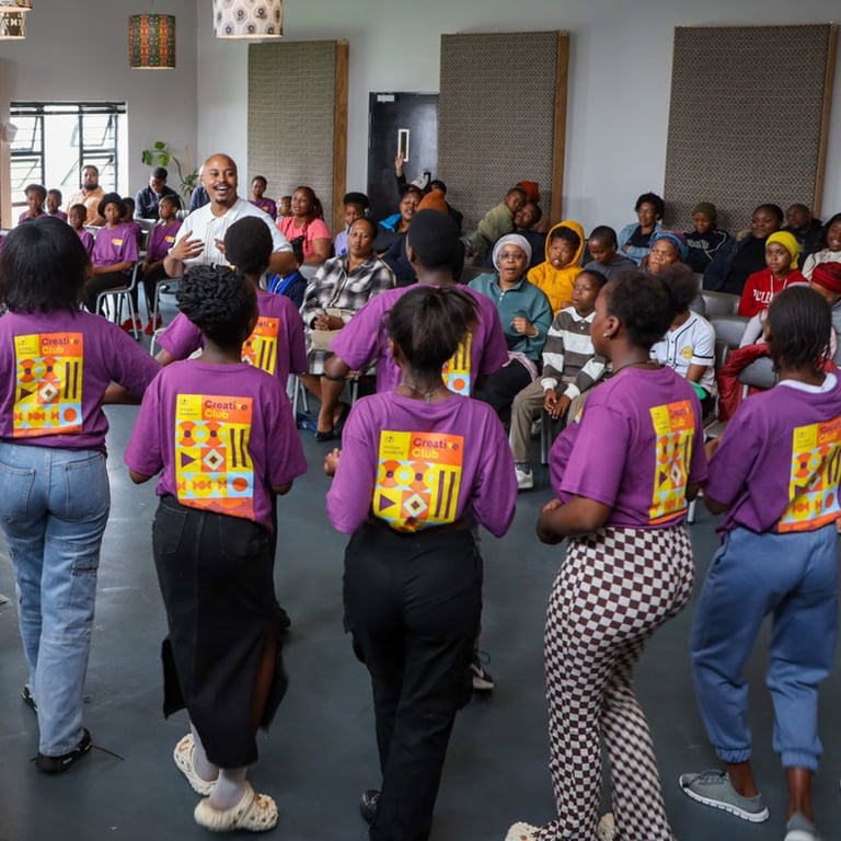 A 6 to 12 month paid internship at Bridges Academy in Langa for 2026, giving alumni the chance to work with children and lead creative sessions in music, dance, and mindfulness.